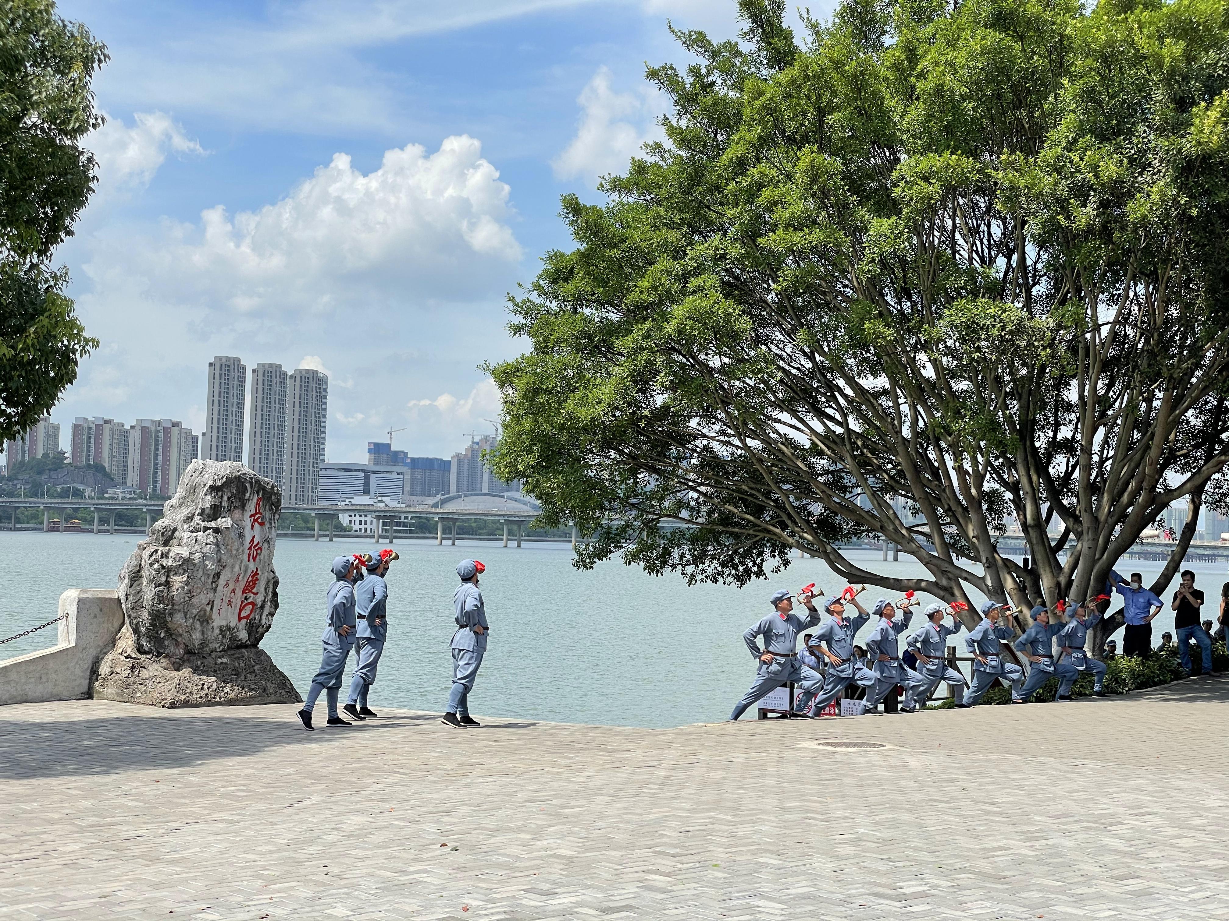 7月11日,乾照黨建隊(duì)伍參觀了長征第一渡口。世界上最偉大的壯舉,莫過于舉世聞名的中國工農(nóng)紅軍二萬五千里長征。于都這塊紅色的土地是中央紅軍的主要集結(jié)地和長征出發(fā)地之一,在渡口現(xiàn)場,聲情并茂的情景劇,讓人們追憶起當(dāng)年長征夜渡于都河,送行紅軍的壯烈場面和動(dòng)人情景。