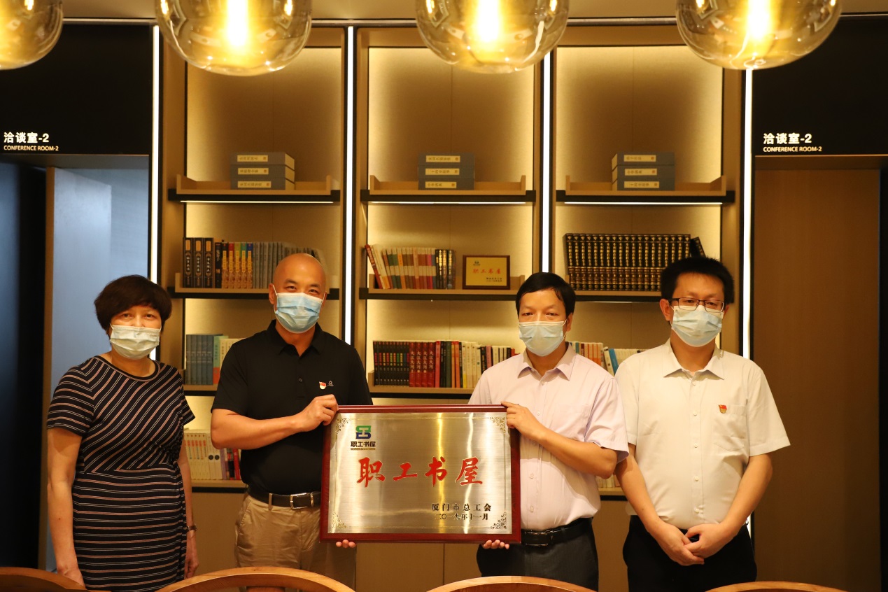2020年5月26日,黨建掛鉤聯(lián)系單位廈門(mén)市總工會(huì)副主席劉義平一行蒞臨乾照光電調(diào)研指導(dǎo),翔安區(qū)總工會(huì)常務(wù)副主席王黎明等領(lǐng)導(dǎo)陪同調(diào)研。調(diào)研組一行參觀了公司展廳、書(shū)吧以及黨建文化墻、黨群活動(dòng)中心,詳細(xì)了解了公司生產(chǎn)、經(jīng)營(yíng)以及黨建帶工建工作情況。期間,雙方還舉行了“職工書(shū)屋”授牌儀式。