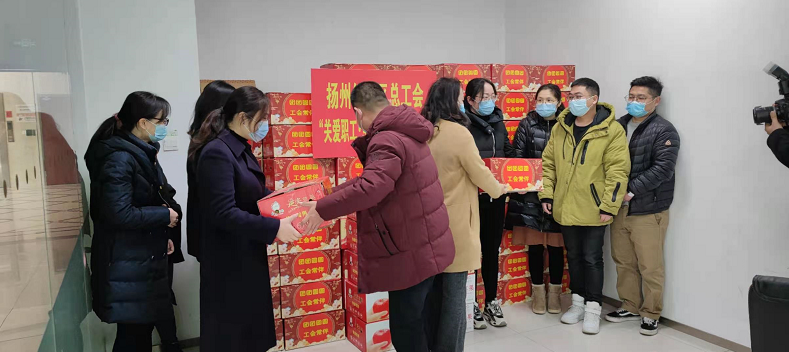 2月9日,揚州市經濟技術開發(fā)區(qū)總工會對揚州乾照主動留揚過年、加班加點的員工進行慰問,特地送上春節(jié)大禮包表示敬意。揚州乾照近150名省外留揚留崗人員接受慰問。