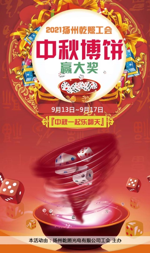 中秋明月醉美滿,人間天涯共此時。受之前疫情的影響,今年揚(yáng)州乾照的傳統(tǒng)博餅活動轉(zhuǎn)移到了線上。此次線上博餅,獎池重磅加碼:獎品更多,覆蓋面更廣。此外,揚(yáng)州乾照也為大家準(zhǔn)備了月餅搭配牛奶的中秋福利套裝,讓員工中秋一起樂翻天!