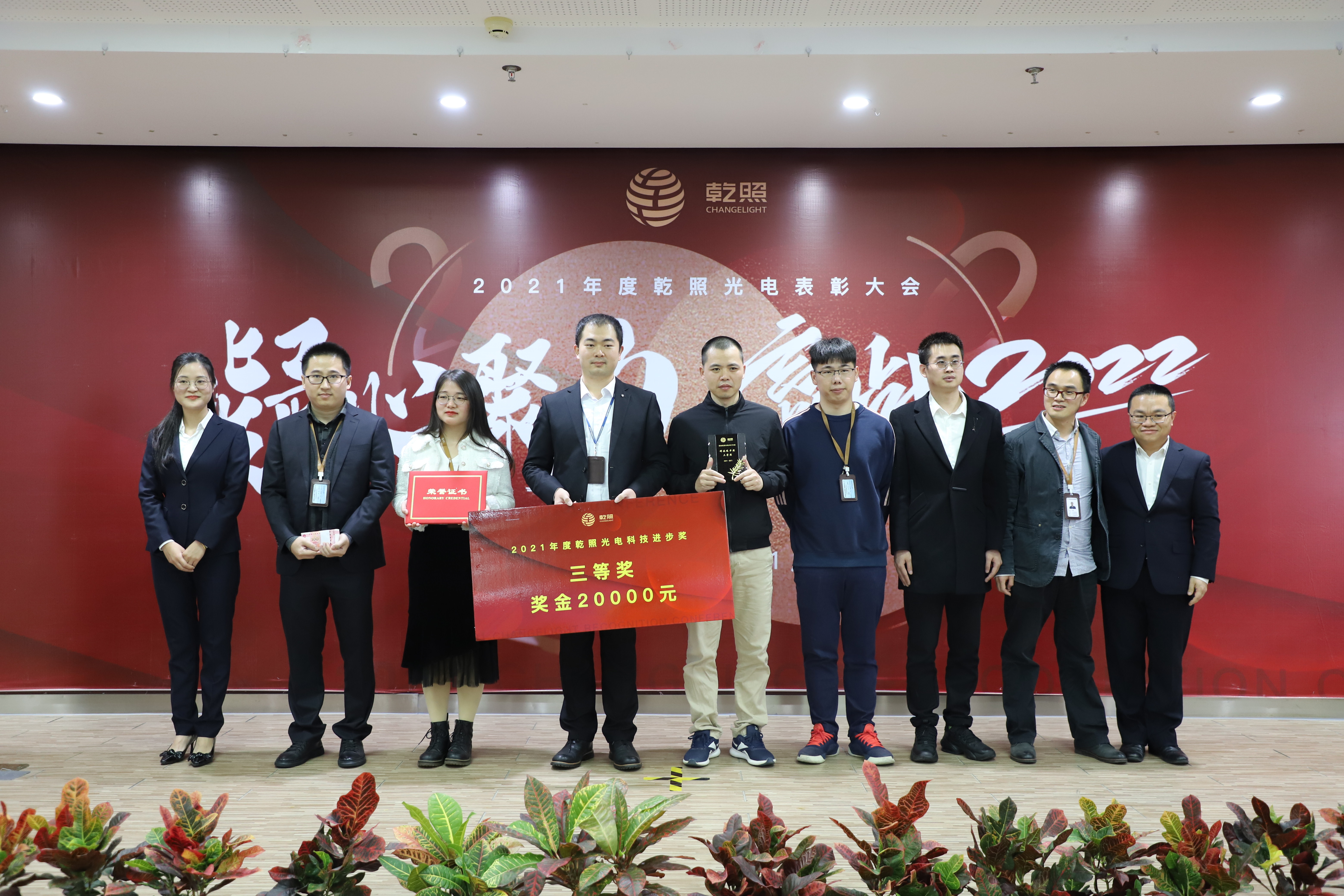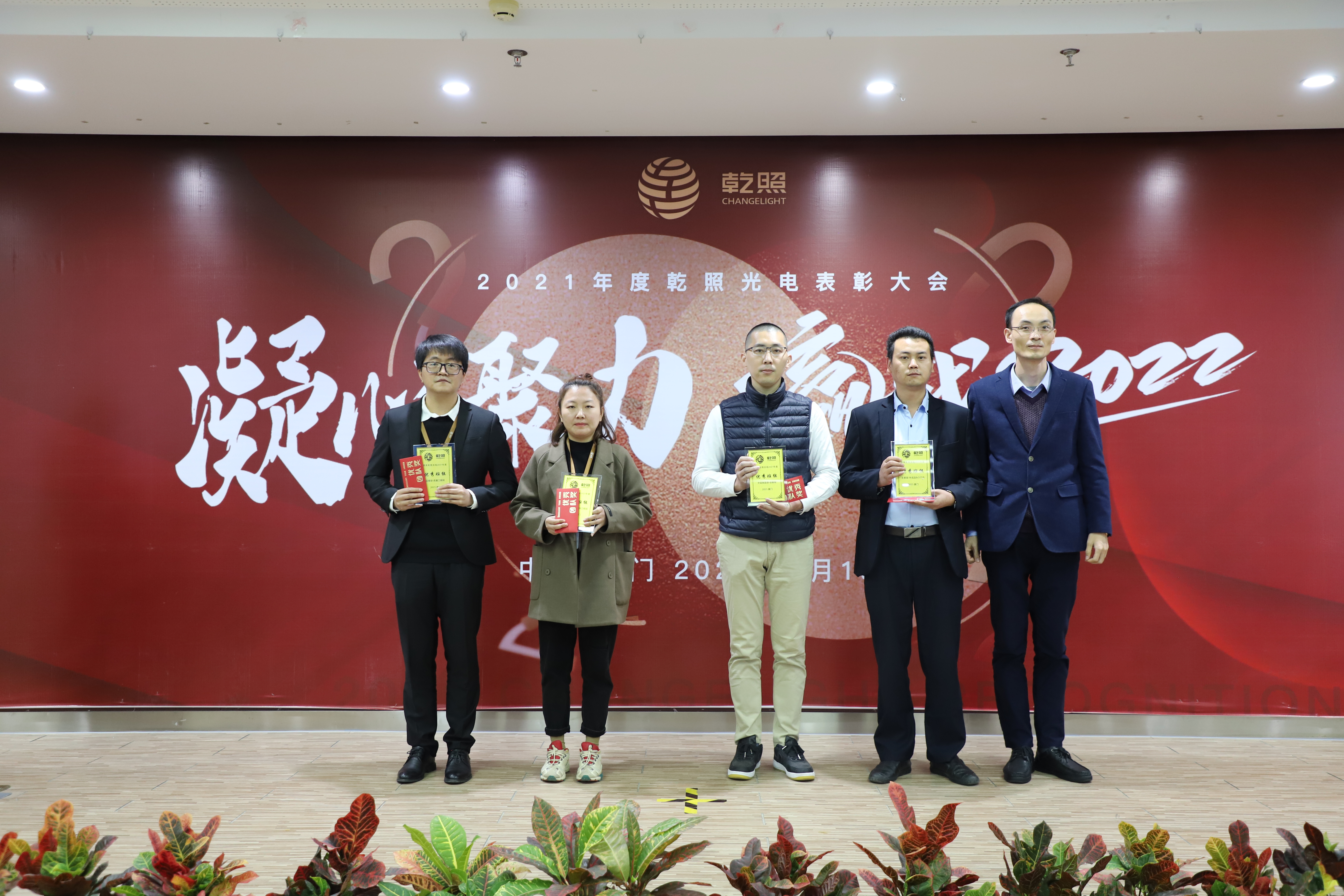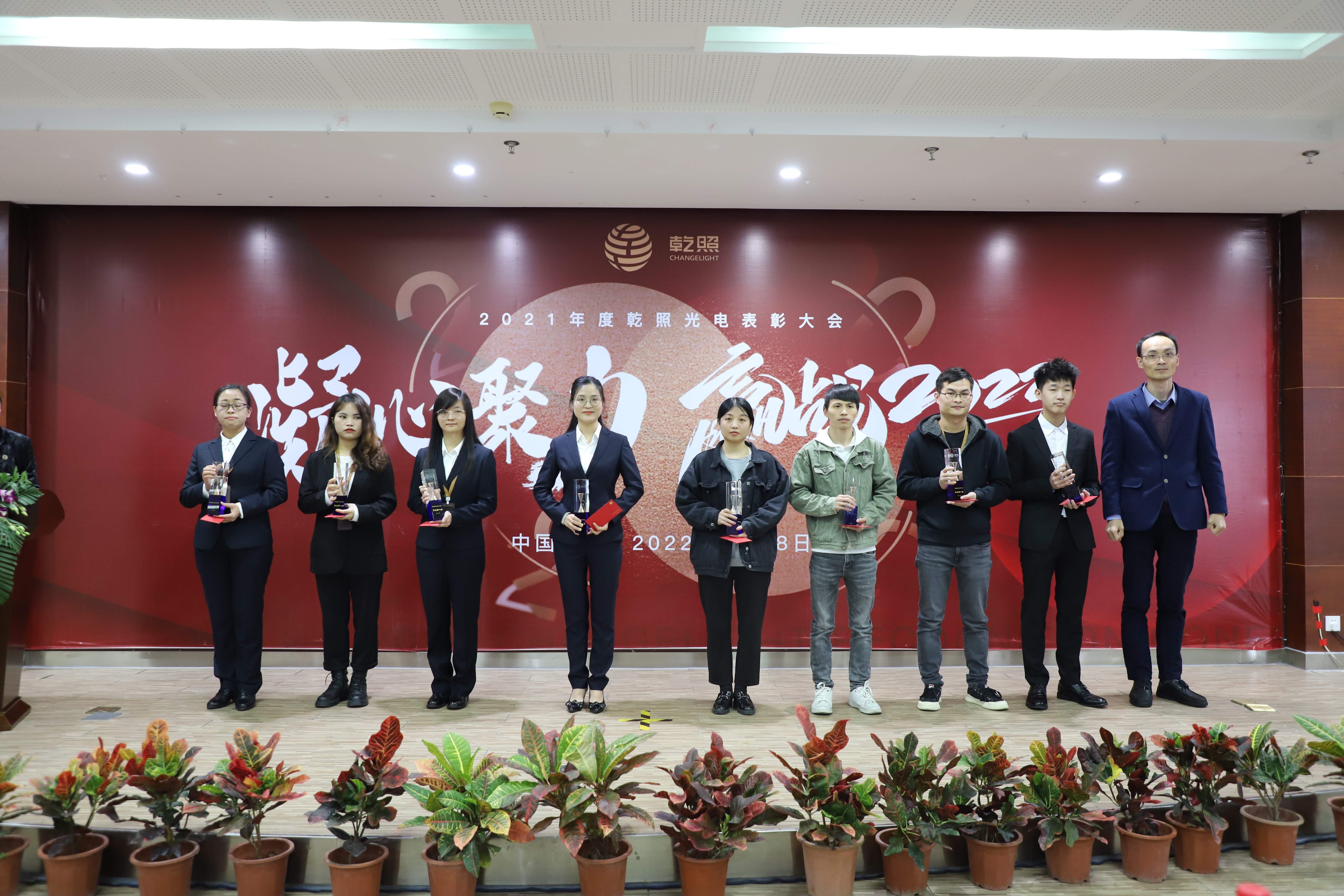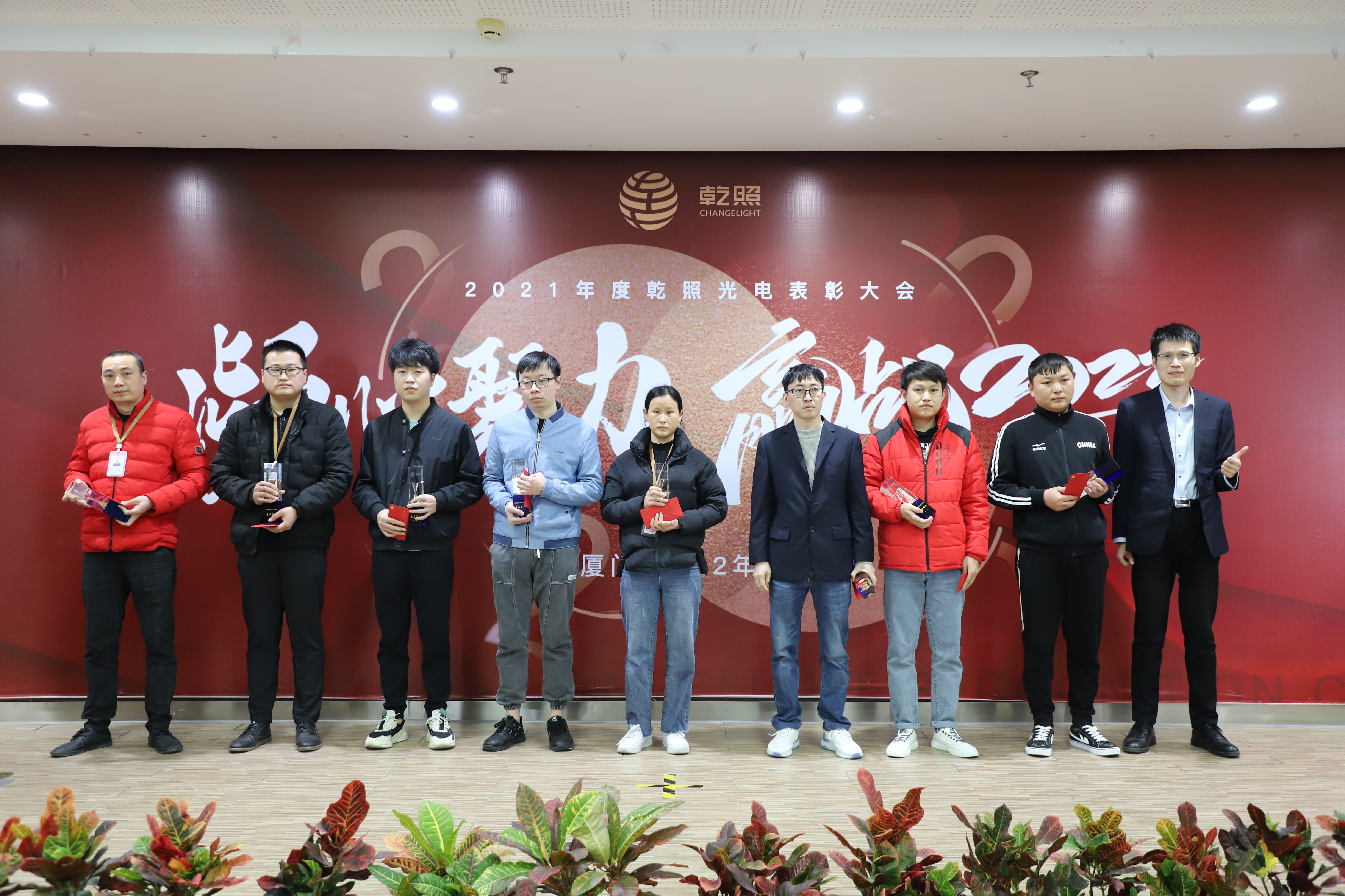 會(huì)議首先觀看了2021年度回顧視頻,而后江西乾照光電總經(jīng)理劉兆對(duì)江西乾照2021年全年度的工作進(jìn)行了匯報(bào)。表彰環(huán)節(jié)共設(shè)立9個(gè)榮譽(yù)獎(jiǎng)項(xiàng),共計(jì)44人榮獲個(gè)人獎(jiǎng),9個(gè)優(yōu)秀團(tuán)隊(duì)獲集體獎(jiǎng)。最后,副董事長(zhǎng)兼總裁蔡海防致辭發(fā)言,他回顧了江西乾照自成立以來(lái),一路成長(zhǎng)的經(jīng)歷。感謝江西乾照員工的付出,并寄語(yǔ)江西乾照未來(lái)更美好!
