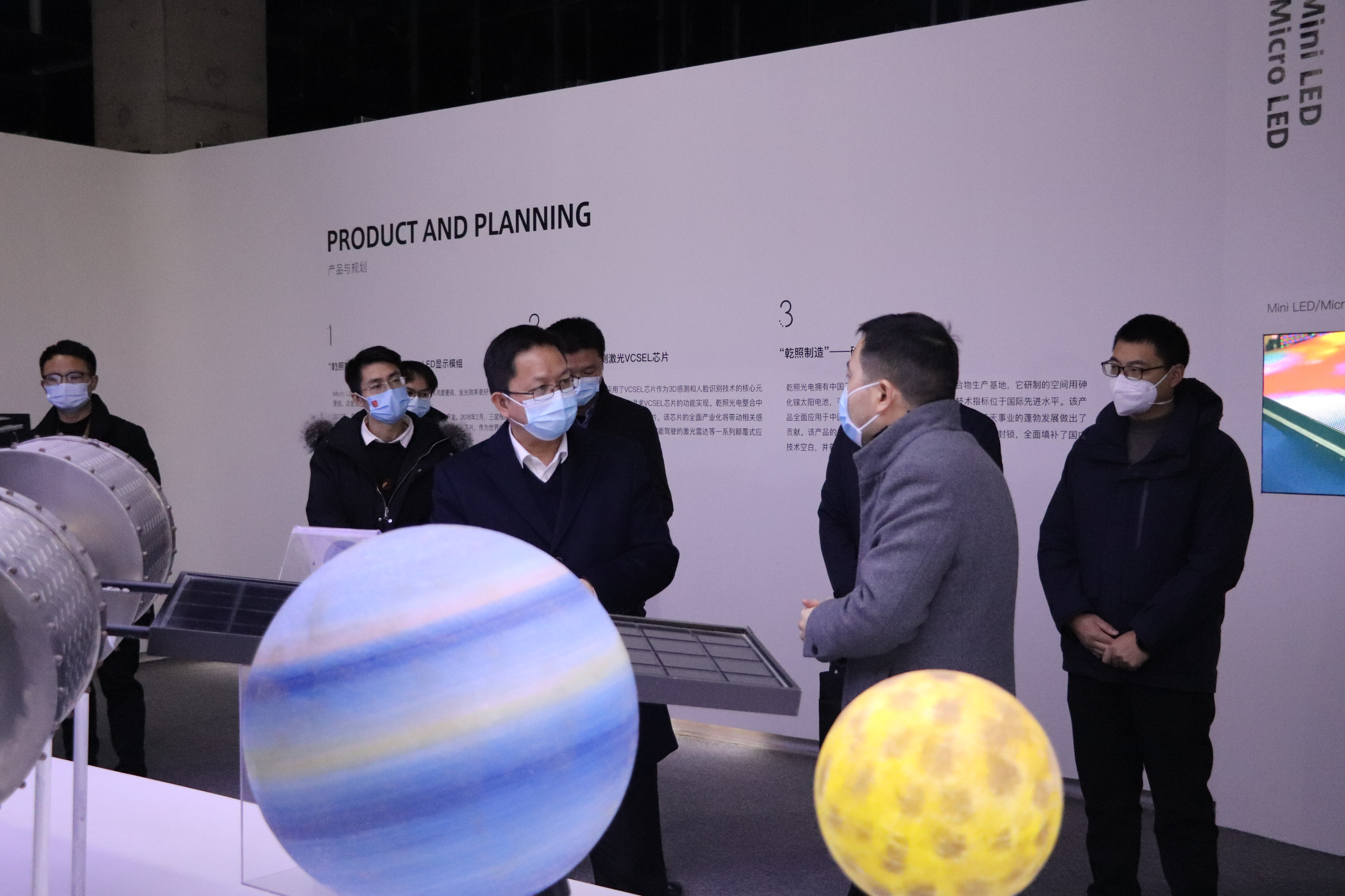隨后,吳書記一行走訪了公司生產(chǎn)車間,詳細了解了外延片、芯片生產(chǎn)制作流程,并針對外延片的質(zhì)檢工作程序、芯片的產(chǎn)品性能進行了探討與交流。調(diào)研中,吳書記對公司現(xiàn)代化的生產(chǎn)技術(shù)和設備運作程序表示高度的贊賞,對公司目前的發(fā)展態(tài)勢給予了肯定。他表示將進一步加強和改進營商環(huán)境建設,點對點為企業(yè)排憂紓困,加大幫扶力度,有效促進企業(yè)高質(zhì)量發(fā)展。