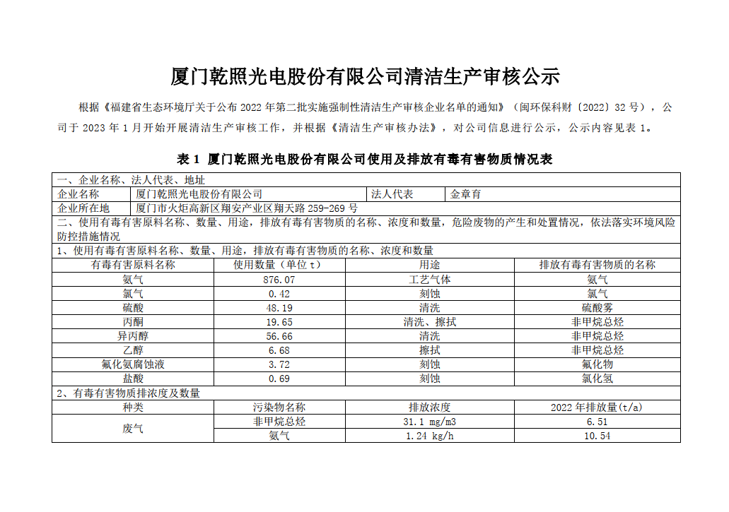 廈門乾照光電股份有限公司清潔生產審核公示