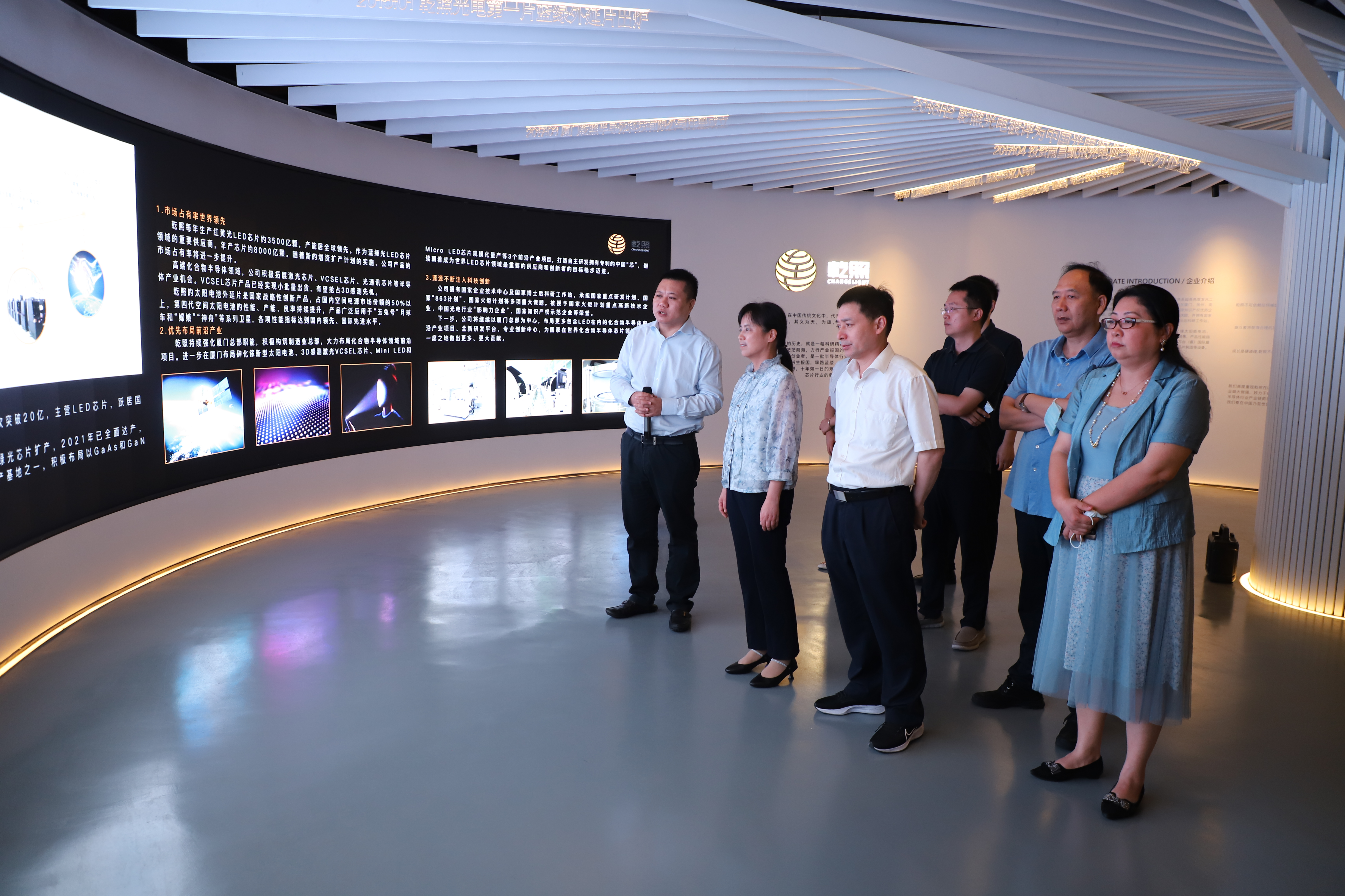 9月8日,南昌市委常委、市宣傳部部長、新建區(qū)委書記李松殿,新建區(qū)委常委、副區(qū)長、新建經(jīng)開區(qū)黨工委第一書記秦潤明等一行領(lǐng)導(dǎo)蒞臨乾照光電調(diào)研指導(dǎo)。乾照光電董事長金章育,副董事長兼總裁蔡海防參與接待。 在公司展廳,李部...