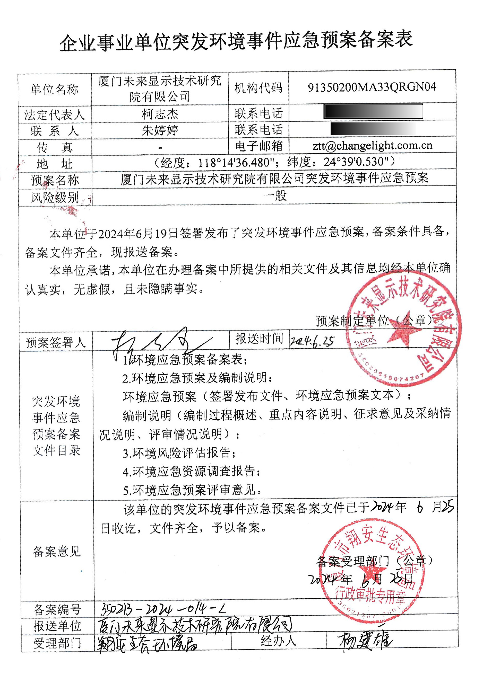 附件:廈門未來顯示技術研究院有限公司突發環境事件應急預案
