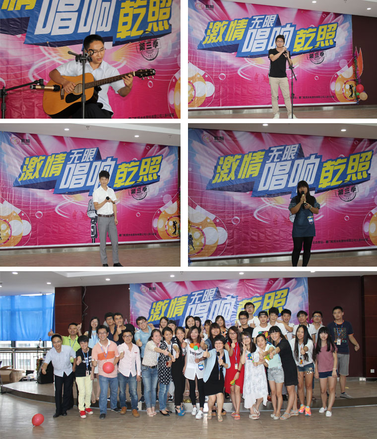 本季歌唱比賽旨在為公司尾牙活動選拔才藝類節(jié)目,發(fā)揮發(fā)掘大家文藝方面的才能,同時通過對企業(yè)文化的發(fā)揚(yáng)達(dá)到促進(jìn)對員工的影響,開拓創(chuàng)新思維。各位參賽選手準(zhǔn)備充分,發(fā)揮最優(yōu)水準(zhǔn)。各位大眾評委通場與歌手互動,比賽現(xiàn)場始終洋溢著隆重?zé)崃业臍夥铡R皇子赏庋又圃觳吭O(shè)備組洪輝柏的獨(dú)唱《你是我的眼》,拉開了比賽的序幕。整場比賽歌聲悠揚(yáng),現(xiàn)場氣氛火爆,洋溢著濃郁的節(jié)日氣氛。兩首不同風(fēng)格的《海闊天空》在外延部戴金途和采購部陳明郅的演繹下,把比賽推向高潮。現(xiàn)場吸引了各個部門領(lǐng)導(dǎo)、員工前來觀戰(zhàn),并不時贏得陣陣掌聲和歡呼聲。在經(jīng)過緊張激烈的評選后,最終有11名選手進(jìn)入復(fù)賽。在8月27號下午,決賽終于開始了。選手們雖然心情更加緊張,但一上臺就盡情歌唱,臺下的評委也給出了公正公平的分?jǐn)?shù)。本次比賽也秉承著“友誼第一,比賽第二!”的宗旨,有的選手雖然沒獲獎,但他們非常享受這個舞臺。最終,芯片部的陳健文演唱的一首《小情歌》虜獲了所有評委的心,獲得冠軍,外延部的戴金途取得亞軍,研發(fā)部的姜偉取得季軍的好成績。